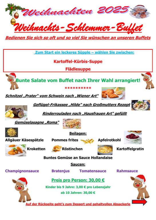 möchten wir Sie mit unserem Weihnachts-Schlemmer-Buffet verwöhnen!