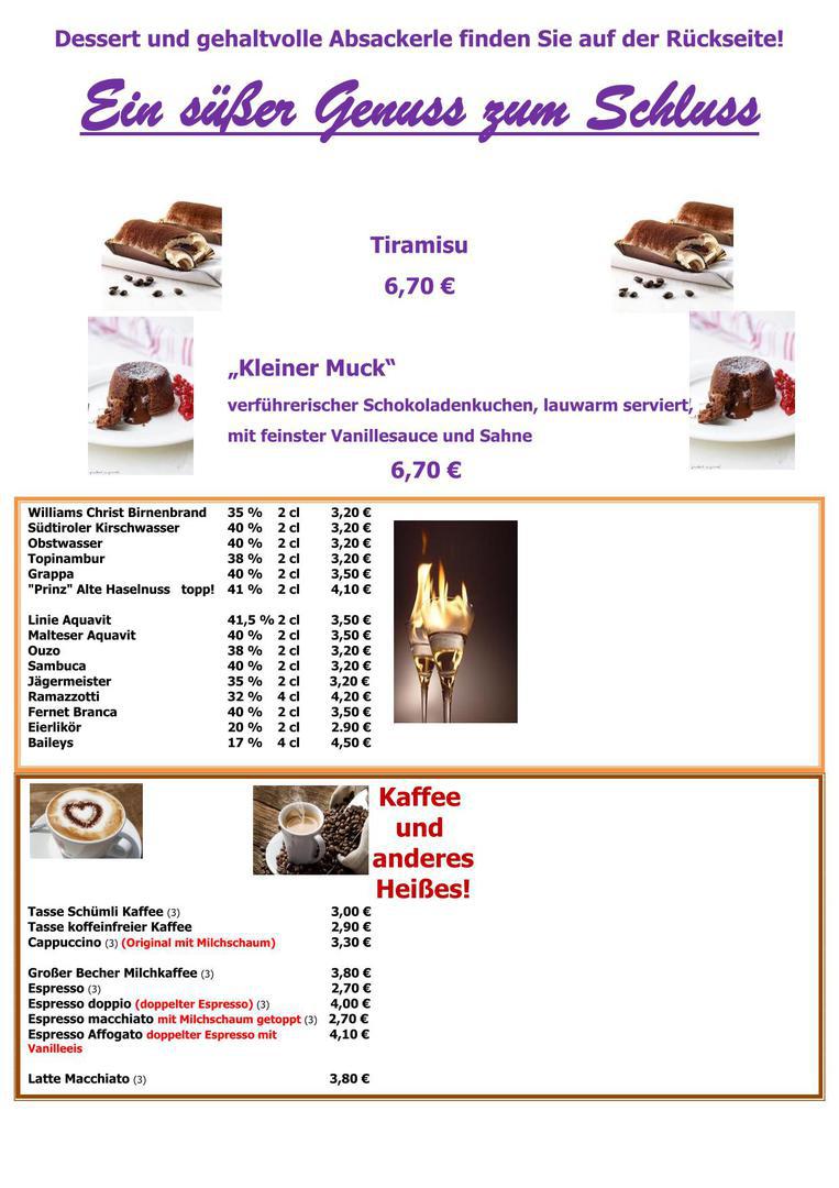 Ein süßer oder gehaltvoller Genuss zum Schluss kann dann noch extra dazu bestellt werden!